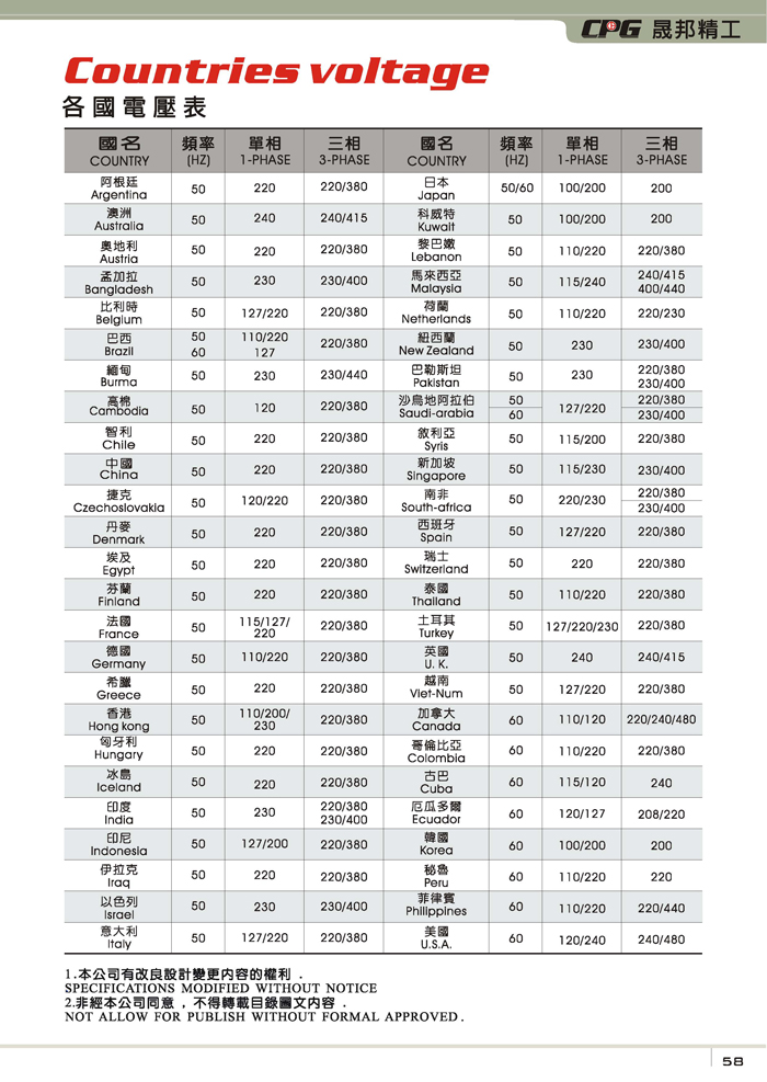 城邦齒輪減速電機(jī)技術(shù)領(lǐng)先!23年專注減速馬達(dá)制造研發(fā)!為您提供高性價(jià)比的齒輪減速機(jī),剎車馬達(dá),剎車電機(jī),減速電機(jī)和良好的售后服務(wù)!客服:400-8833-185.產(chǎn)品本文介紹:《各國(guó)電壓表》--城邦齒輪減速電機(jī)的電壓選擇參考