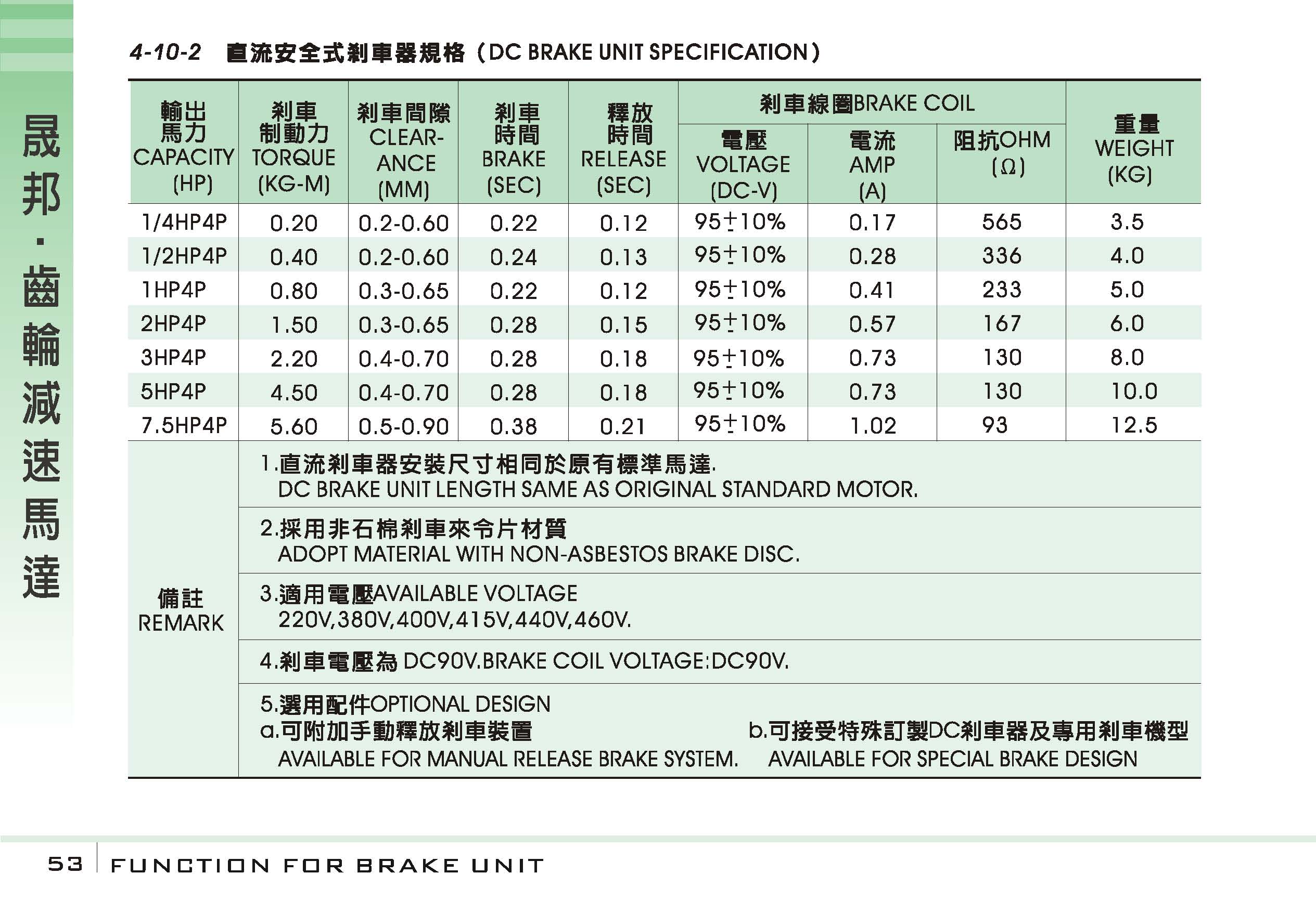 齒輪減速剎車馬達:直流安全式剎車器規(guī)格參考