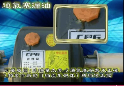 (2)齒輪減速箱通氣塞漏油  [造成的原因:1、油量太多;2、通氣塞安裝不正確;3、頻繁冷啟動(油產生泡沫)或油位太高]