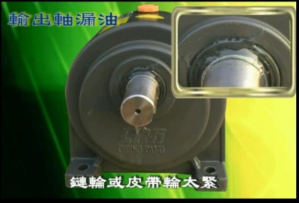 (3)齒輪減速箱輸出軸漏油  [造成的原因:鏈輪或皮帶輪太緊]