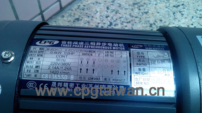 ---->三相齒輪剎車電機CV400-40SB 的電壓為三相220V/380V 50HZ