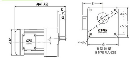 目前晟邦電機工廠共研發出兩款特制法蘭,CV1立式B型法蘭減速機和CV2立式B型法蘭減速機,也稱方法蘭減速機,(俗稱偏心法蘭);就是出力軸所處位置不是法蘭的中心位置,而是離偏離中心有一定的距離,類似于其他6W-120W小型減速機的偏離中心位置的方式,彌補了小型減速機200W以上無偏心法蘭的空白。