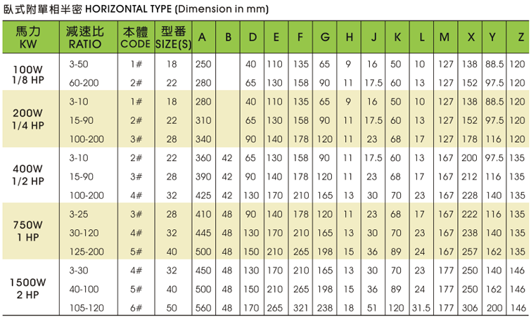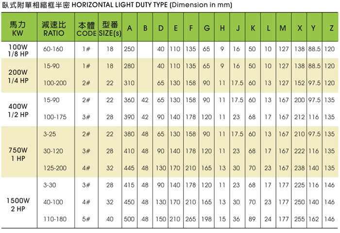 • 單相臥式齒輪減速電機