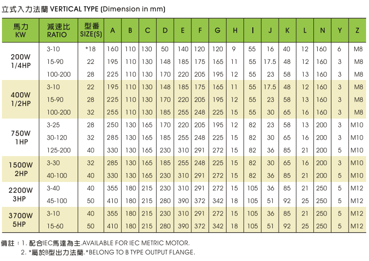(一)下圖為CVM 立式入力法蘭齒輪減速機詳細外型尺寸參數: