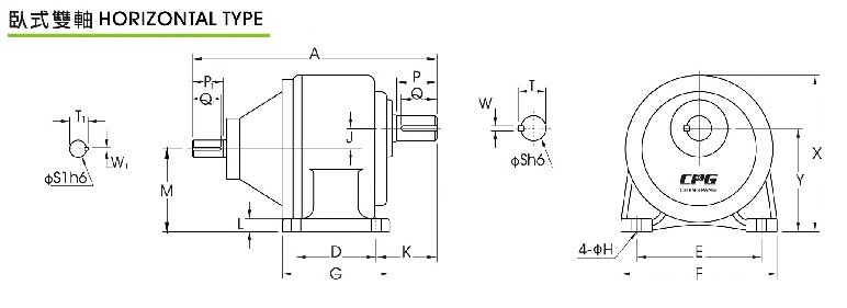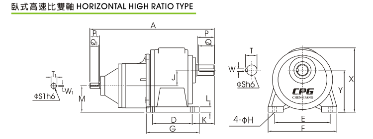 (二)下圖為CHD 臥式雙軸型高速比齒輪減速機詳細外型尺寸參數: